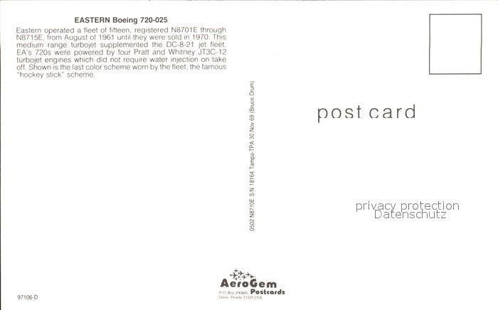 Flugzeuge Zivil Eastern Boeing 720-025 postalisch nicht gelaufen Erhaltung siehe scans