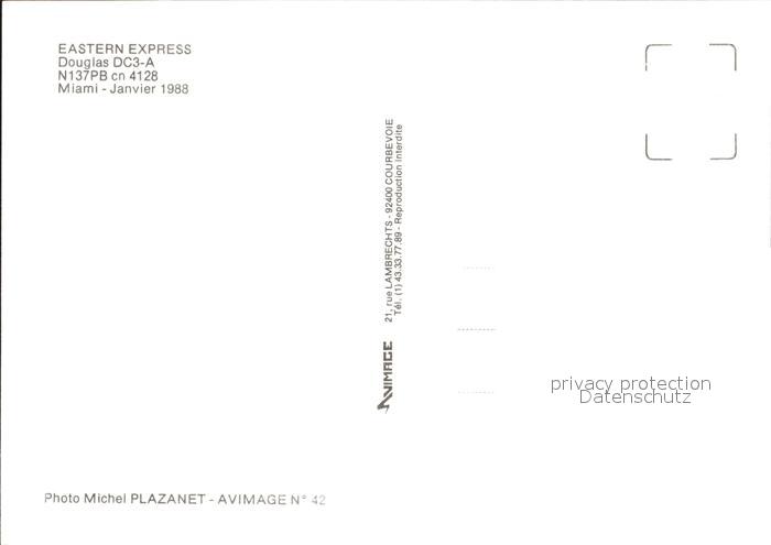 Flugzeuge Zivil Eastern Express Douglas DC3-A N137PB cn 4128 postalisch nicht gelaufen Erhaltung siehe scans