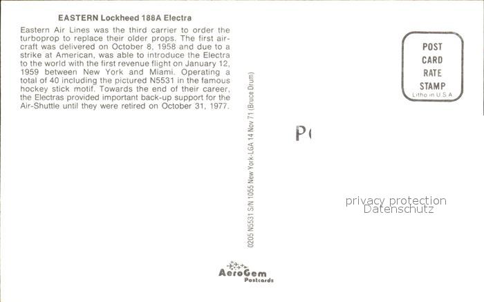 Flugzeuge Zivil Eastern Lockheed 188A Electra postalisch nicht gelaufen Erhaltung siehe scans