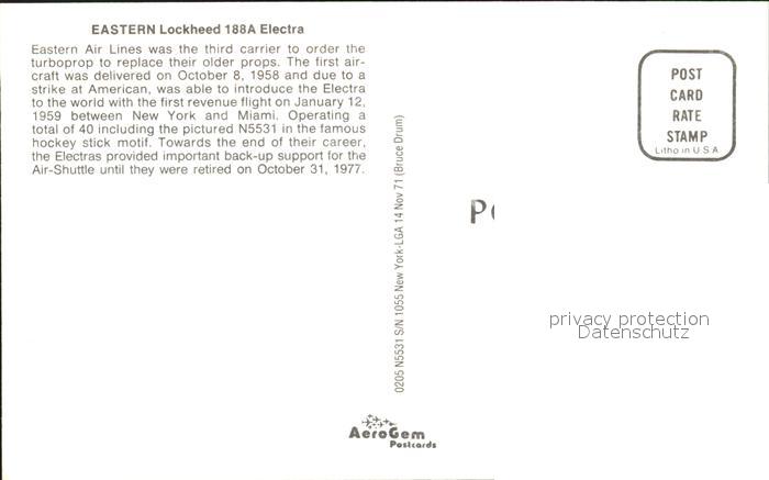 Flugzeuge Zivil Eastern Lockheed 188A Electra N5531 postalisch nicht gelaufen Erhaltung siehe scans