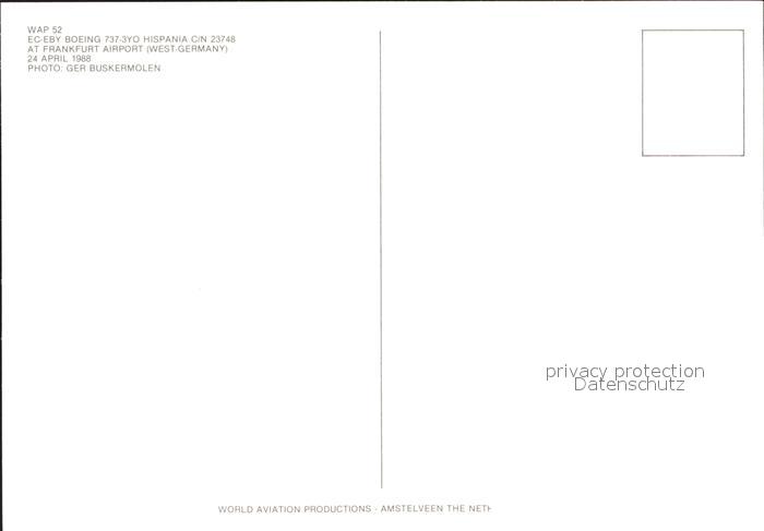 Flugzeuge Zivil EC-EBY Boeing 737-3YO Hispania c/n 23748 postalisch nicht gelaufen Erhaltung siehe scans