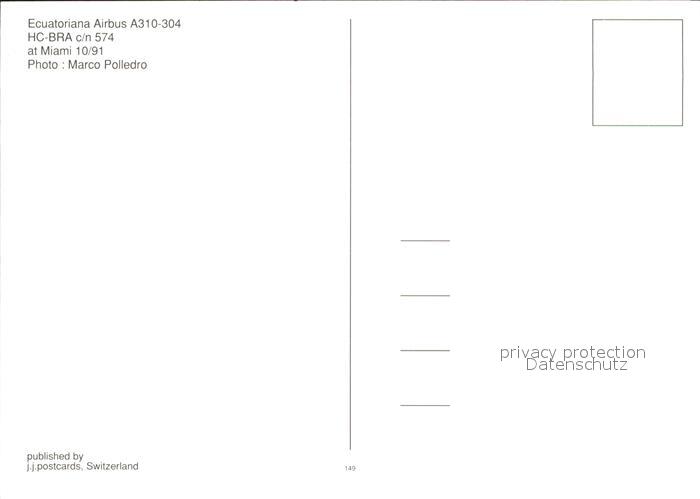 Flugzeuge Zivil Ecuatoriana Airbus A310-304 HC-BRA c/n 574 postalisch nicht gelaufen Erhaltung siehe scans