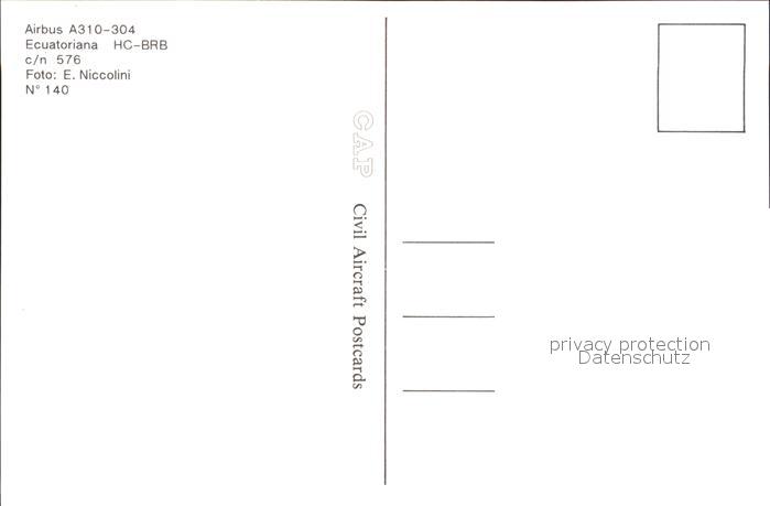 Flugzeuge Zivil Ecuatoriana Airbus A310-304 HC-BRB c/n 576 postalisch nicht gelaufen Erhaltung siehe scans