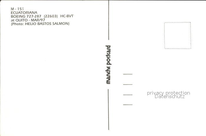 Flugzeuge Zivil Ecuatoriana Boeing 727-287 22603 HC-BVT postalisch nicht gelaufen Erhaltung siehe scans