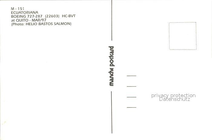 Flugzeuge Zivil Ecuatoriana Boeing 727-287 22603 HC-BVT postalisch nicht gelaufen Erhaltung siehe scans