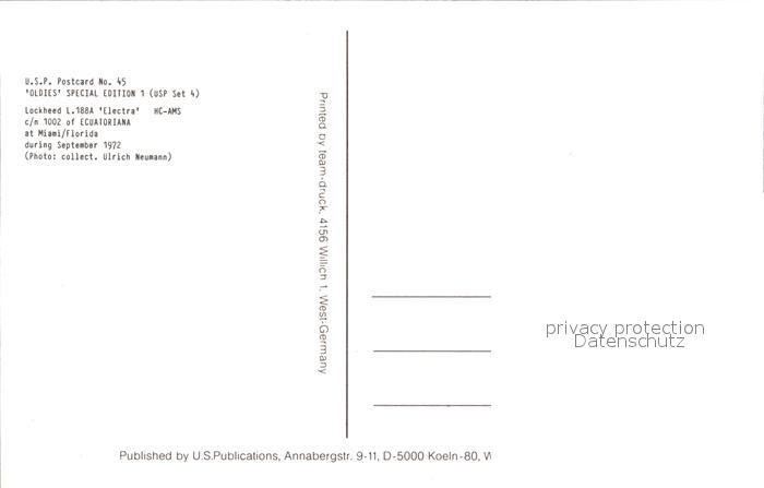 Flugzeuge Zivil Ecuatoriana Lockheed L-188A Electra HC-AMS c/n 1002 postalisch nicht gelaufen Erhaltung siehe scans