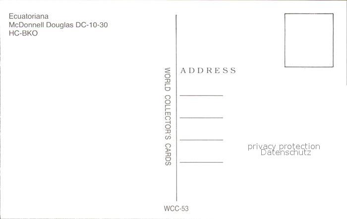 Flugzeuge Zivil Ecuatoriana McDonnell Douglas DC-10-30 HC-BKO postalisch nicht gelaufen Erhaltung siehe scans