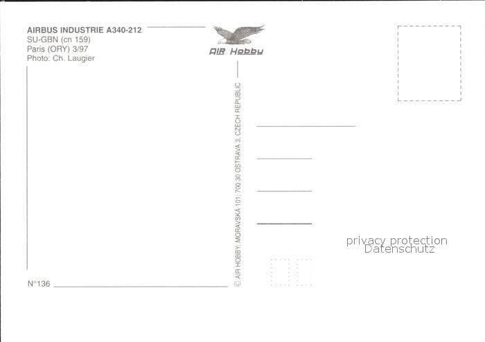 Flugzeuge Zivil Egypt Air A340-212 SU-GBN cn 159 postalisch nicht gelaufen Erhaltung siehe scans