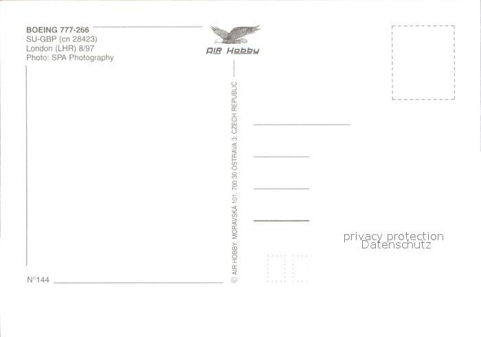 Flugzeuge Zivil Egypt Air Boeing 777-266 SU-GBP cn 28423 postalisch nicht gelaufen Erhaltung siehe scans