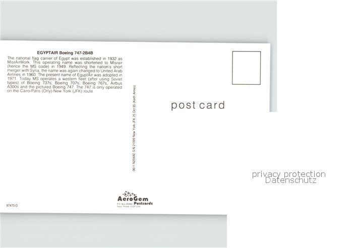Flugzeuge Zivil Egyptair Boeing 747-2B4B postalisch nicht gelaufen Erhaltung siehe scans