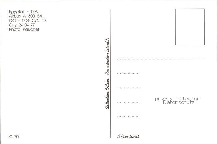 Flugzeuge Zivil Egyptair TEA Airbus A 300 B4 OO-TEG c/n 17 postalisch nicht gelaufen Erhaltung siehe scans