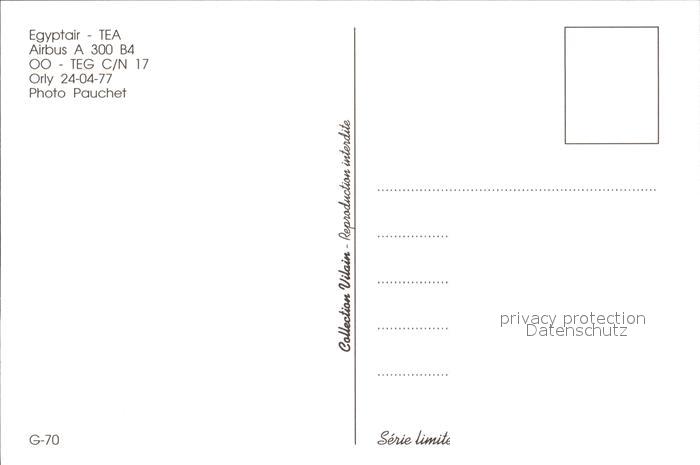 Flugzeuge Zivil Egyptair TEA Airbus A 300 B4 OO-TEG C/N 17 postalisch nicht gelaufen Erhaltung siehe scans
