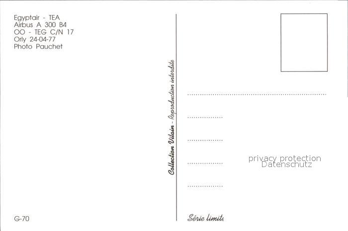 Flugzeuge Zivil Egyptair TEA Airbus A300 B4 OO-TEG C/N 17 postalisch nicht gelaufen Erhaltung siehe scans