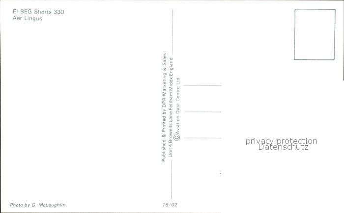 Flugzeuge Zivil EI-BEG Shorts 330 Aer Lingus postalisch nicht gelaufen Erhaltung siehe scans