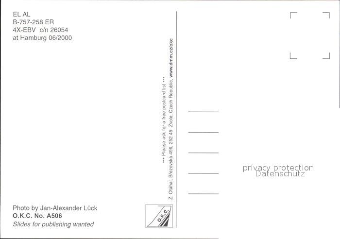 Flugzeuge zivil EL Al B-757-258 ER 4X-EBV c/n 26054 Hamburg postalisch nicht gelaufen Erhaltung siehe scans