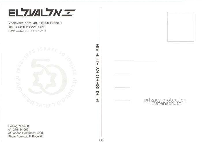 Flugzeuge Zivil EL AL Boeing 747-458 c/n 27915/1062 postalisch nicht gelaufen Erhaltung siehe scans