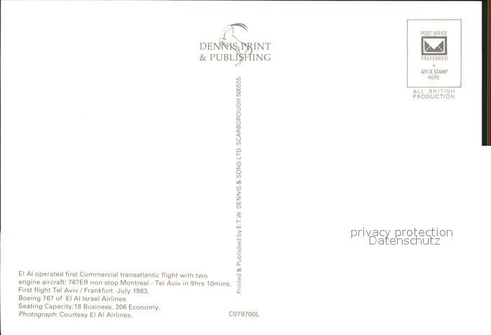 Flugzeuge Zivil El Al Boeing 767 postalisch nicht gelaufen Erhaltung siehe scans
