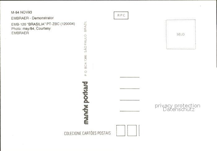 Flugzeuge Zivil EMB-120 Brasilia PT-ZBC 120004 postalisch nicht gelaufen Erhaltung siehe scans