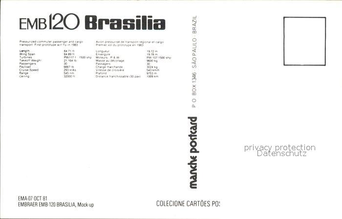 Flugzeuge Zivil EMB120 Brasilia postalisch nicht gelaufen