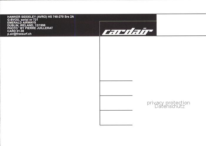 Flugzeuge Zivil Emerald Airways Hawker Siddeley HS 748-270 G-BVOU postalisch nicht gelaufen Erhaltung siehe scans