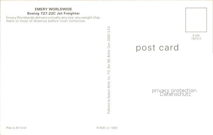 Flugzeuge Zivil Emery Worldwide Boeing 727-22C Jet Freighter N7408U c/n 19097 postalisch nicht gelaufen Erhaltung siehe scans