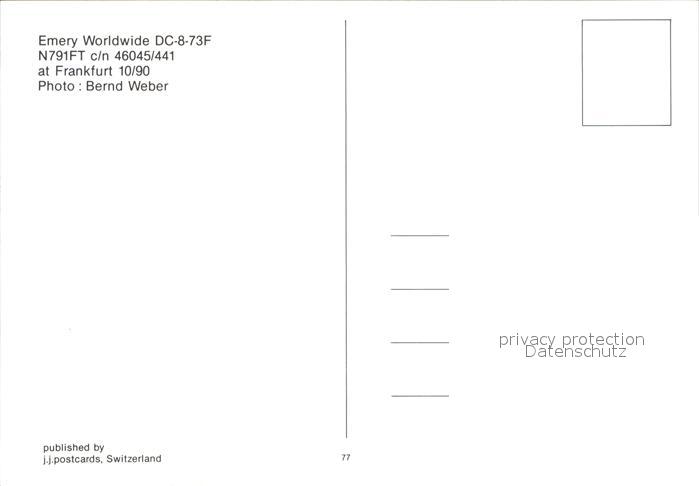 Flugzeuge Zivil Emery Worldwide DC-8-73F N791FT c/n 46045/441 postalisch nicht gelaufen Erhaltung siehe scans