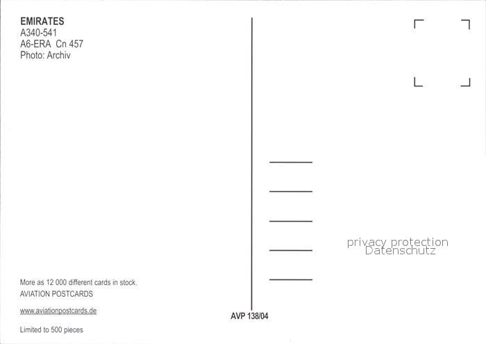 Flugzeuge Zivil Emirates A340-541 A6-ERA Cn 457 postalisch nicht gelaufen Erhaltung siehe scans