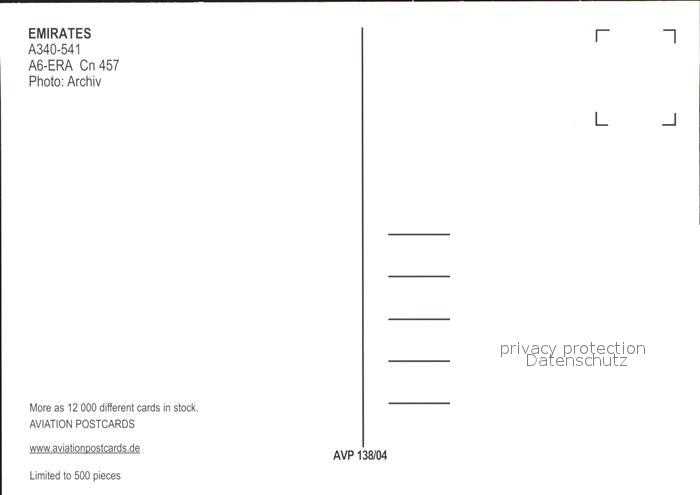 Flugzeuge Zivil Emirates A340-541 A6-ERA Cn 457 postalisch nicht gelaufen Erhaltung siehe scans