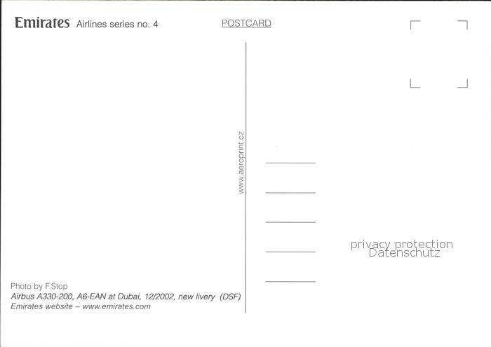 Flugzeuge Zivil Emirates Airbus A330-200 A6-EAN postalisch nicht gelaufen Erhaltung siehe scans