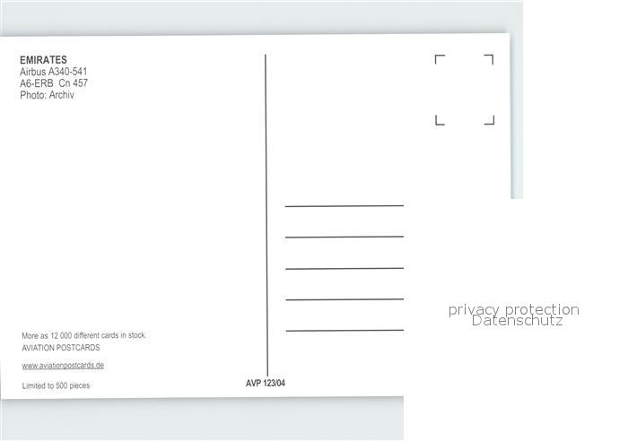 Flugzeuge Zivil Emirates Airbus A340-541 A6-ERB Cn 457 postalisch nicht gelaufen Erhaltung siehe scans