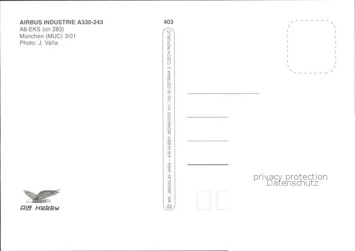 Flugzeuge zivil Emirates Airbus Industries A330-243 A6-EKS (cn 283) Muenchen postalisch nicht gelaufen Erhaltung siehe scans