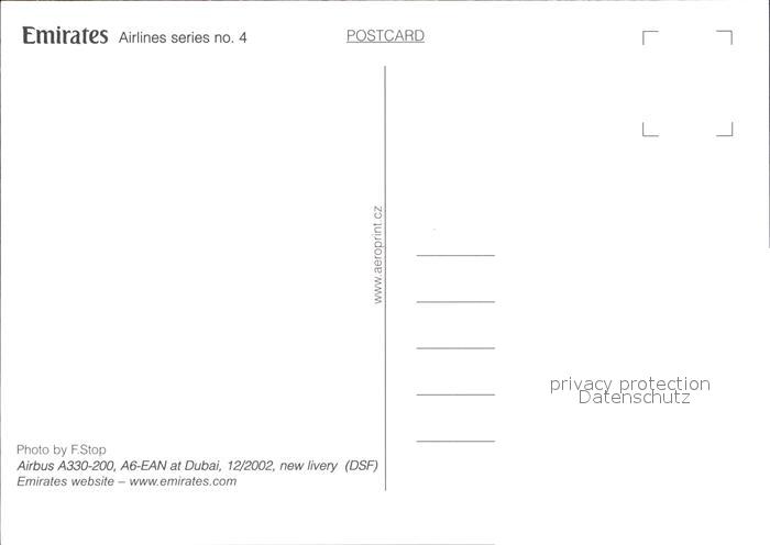 Flugzeuge Zivil Emirates Airlines Airbus 330-200 A6-EAN postalisch nicht gelaufen Erhaltung siehe scans