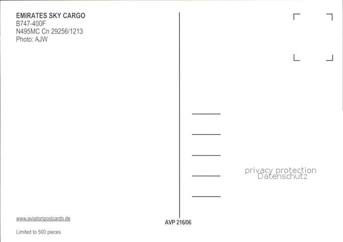 Flugzeuge Zivil Emirates Sky Cargo B747-400F N495MC cn 29256/1213 postalisch nicht gelaufen