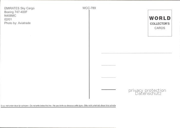 Flugzeuge Zivil Emirates Sky Cargo Boeing 747-400F N408MC postalisch nicht gelaufen Erhaltung siehe scans