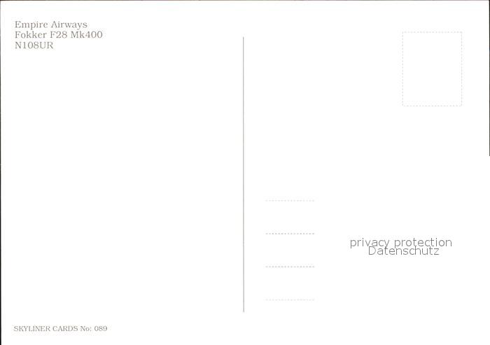 Flugzeuge Zivil Empire Airways Fokker F28 Mk400 N108UR postalisch nicht gelaufen Erhaltung siehe scans