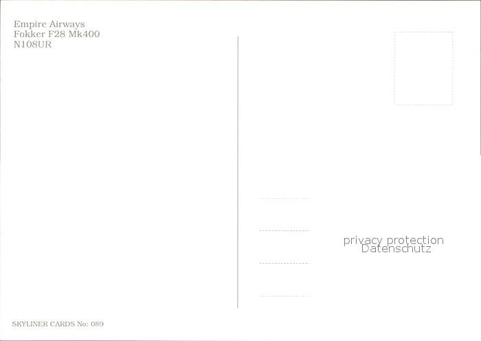Flugzeuge Zivil Empire Airways Fokker F28 Mk400 N108UR postalisch nicht gelaufen Erhaltung siehe scans