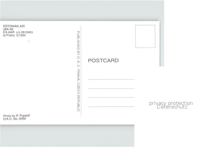 Flugzeuge Zivil Estonian Air JAK-40 ES-AAR c/n 9510493 postalisch nicht gelaufen Erhaltung siehe scans