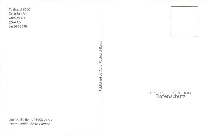 Flugzeuge Zivil Estonian Air Yakolev 40 ES-AAS c/n 9632049 postalisch nicht gelaufen Erhaltung siehe scans