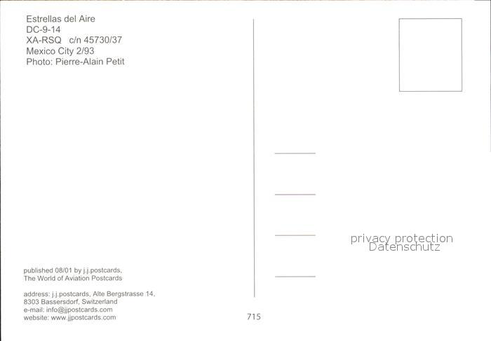 Flugzeuge Zivil Estrellas del Aire DC-9-14 XA-RSQ c/n 45730/37 postalisch nicht gelaufen Erhaltung siehe scans