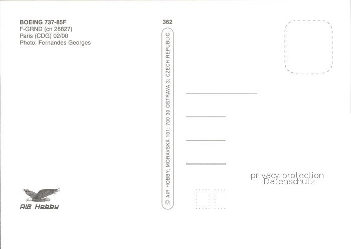 Flugzeuge Zivil Euralair Boeing 737-85F F-GRND cn 28827 postalisch nicht gelaufen Erhaltung siehe scans
