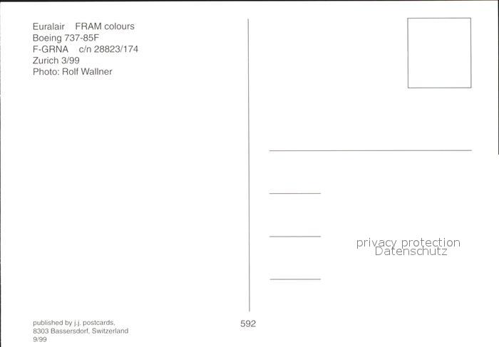 Flugzeuge Zivil Euralair FRAM colours Boeing 737-85F F-GRNA c/n 28823/174 postalisch nicht gelaufen Erhaltung siehe scans
