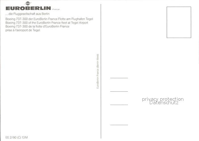 Flugzeuge Zivil Euroberlin Boeing 737-300 Flughafen Tegel postalisch nicht gelaufen Erhaltung siehe scans