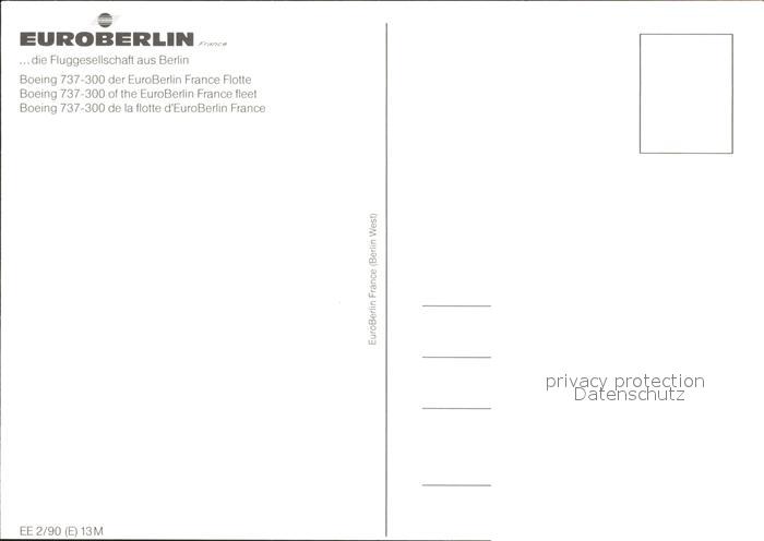 Flugzeuge Zivil Euroberlin France Flotte Boeing 737-300 postalisch nicht gelaufen Erhaltung siehe scans