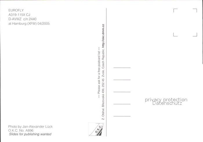 Flugzeuge Zivil Eurofly A319-115X CJ D-AVWZ c/n 2440 postalisch nicht gelaufen Erhaltung siehe scans