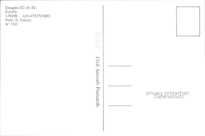 Flugzeuge Zivil Eurofly Douglas DC-9-32 I-RIZW c/n 47575/680 postalisch nicht gelaufen Erhaltung siehe scans