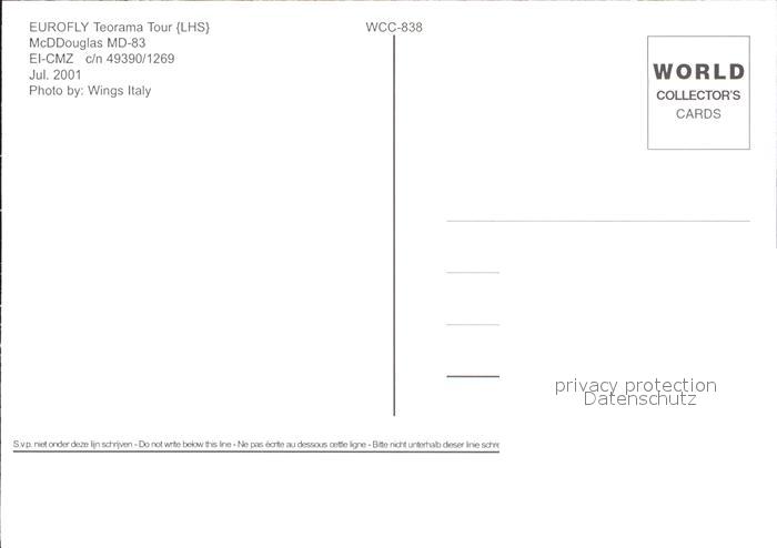 Flugzeuge Zivil Eurofly Teorama Tour McDDouglas MD-83 EI-CMZ postalisch nicht gelaufen Erhaltung siehe scans