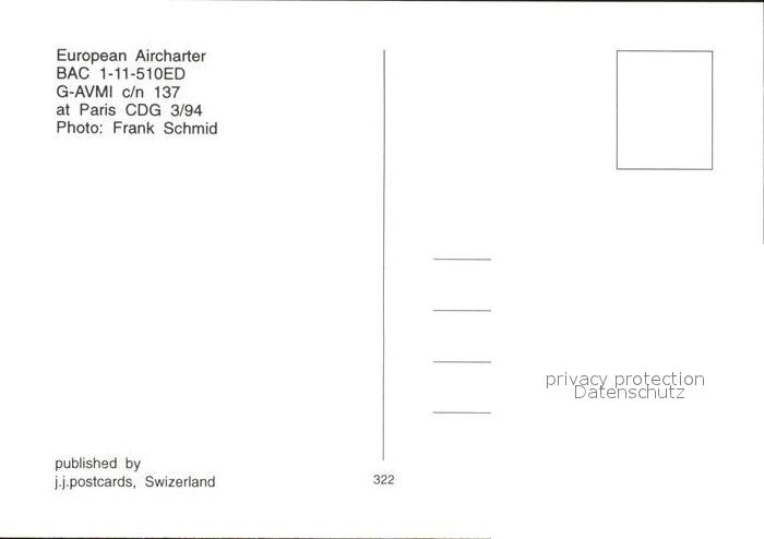Flugzeuge Zivil European Aircharter BAC 1-11-510ED G-AVMI c/n 137 postalisch nicht gelaufen Erhaltung siehe scans