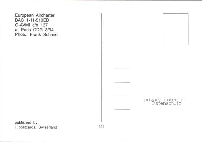 Flugzeuge Zivil European Aircharter BAC 1-11-510ED G-AVMI c/n 137 postalisch nicht gelaufen Erhaltung siehe scans