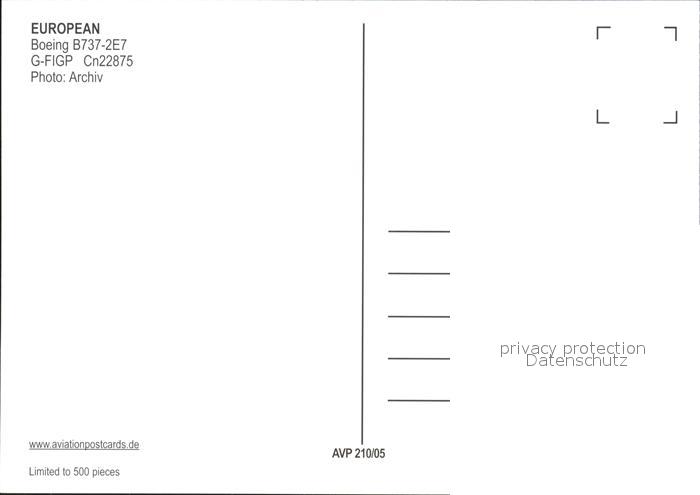 Flugzeuge Zivil European Boeing 737-2E7 G-FIGP Cn22875 postalisch nicht gelaufen Erhaltung siehe scans