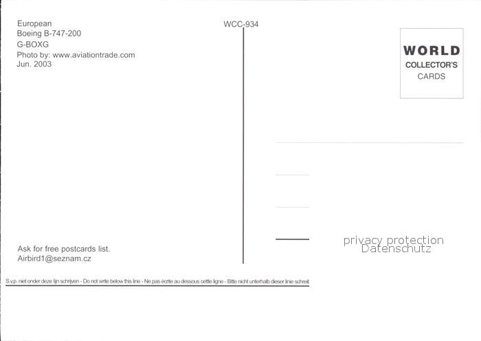 Flugzeuge Zivil European Boeing 747-200 G-BOXG postalisch nicht gelaufen Erhaltung siehe scans